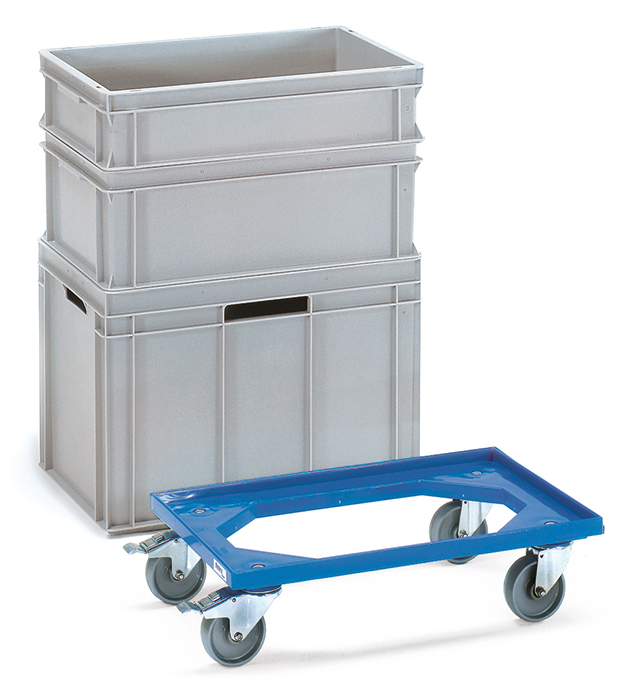 Rolplateau uit hoogwaardig kunststof (ABS 1e keus), kleur blauw, geschikt voor eurobakken 600x400 mm.