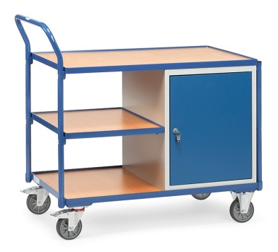 Afsluitbare kast met 1 vaste en 2 verstelbare legborden.